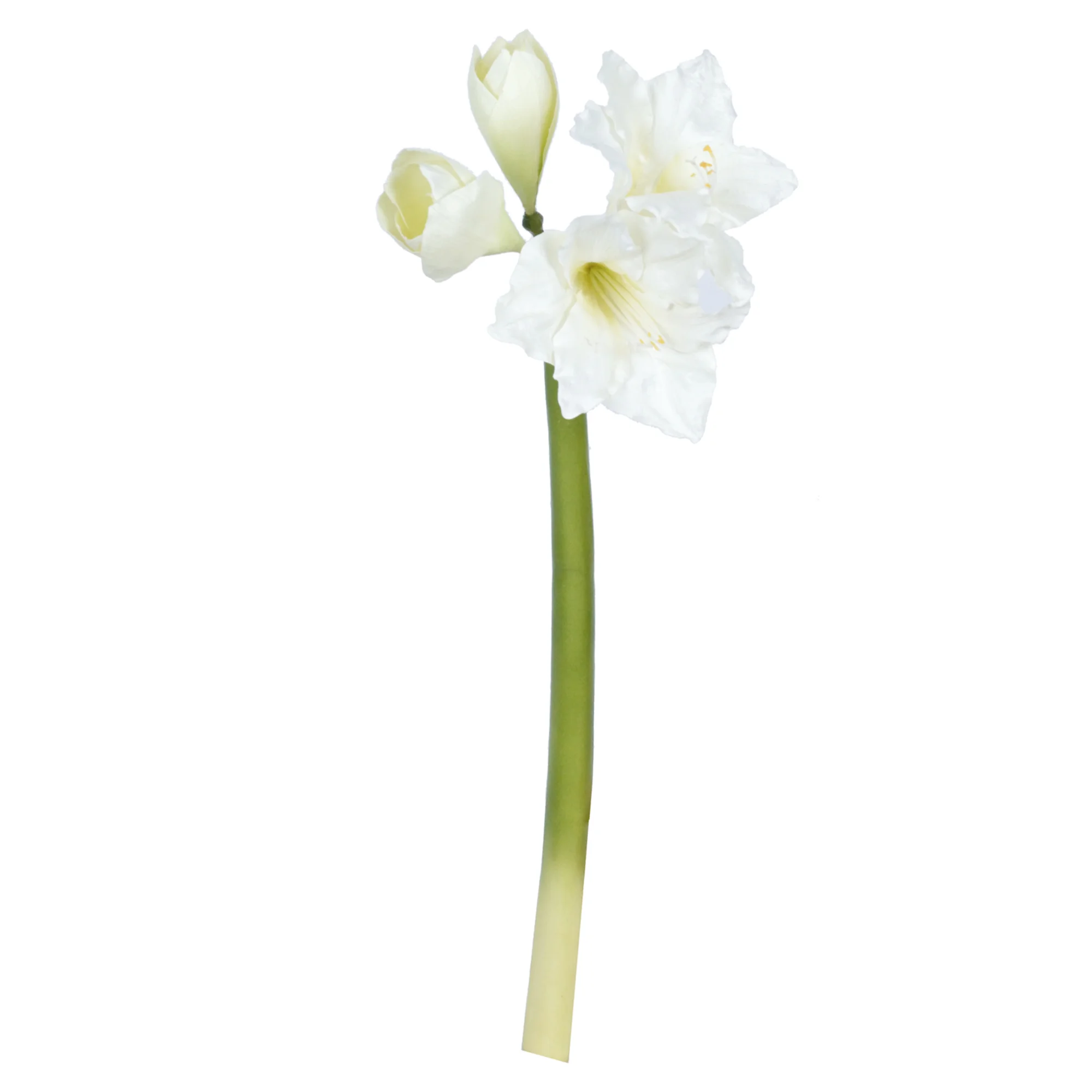 This elegant artificial Amaryllis stem features pristine white blooms. Its main benefit is offering the timeless, festive beauty of a fresh winter bloom that stays perfect forever, without the need for water or difficult bulb care.