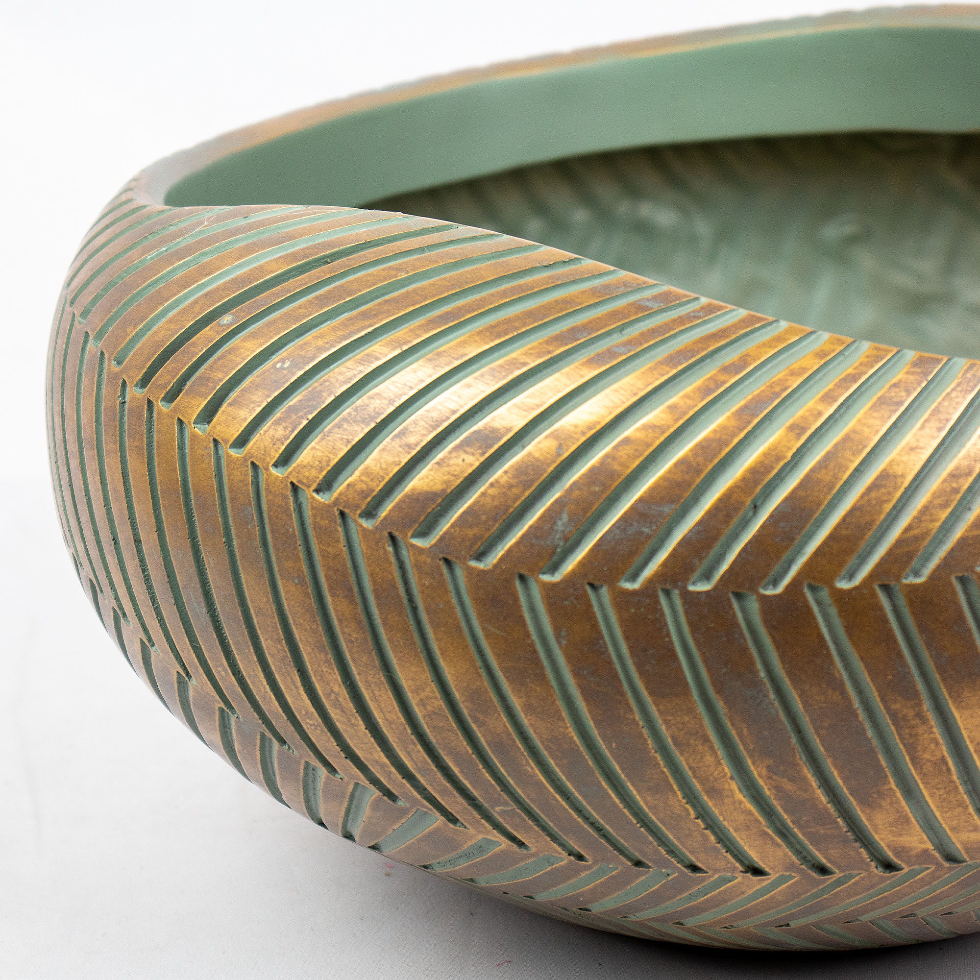 BRONZE & SAGE CARVED POLYRESIN BOWL 38.5X20.5CM