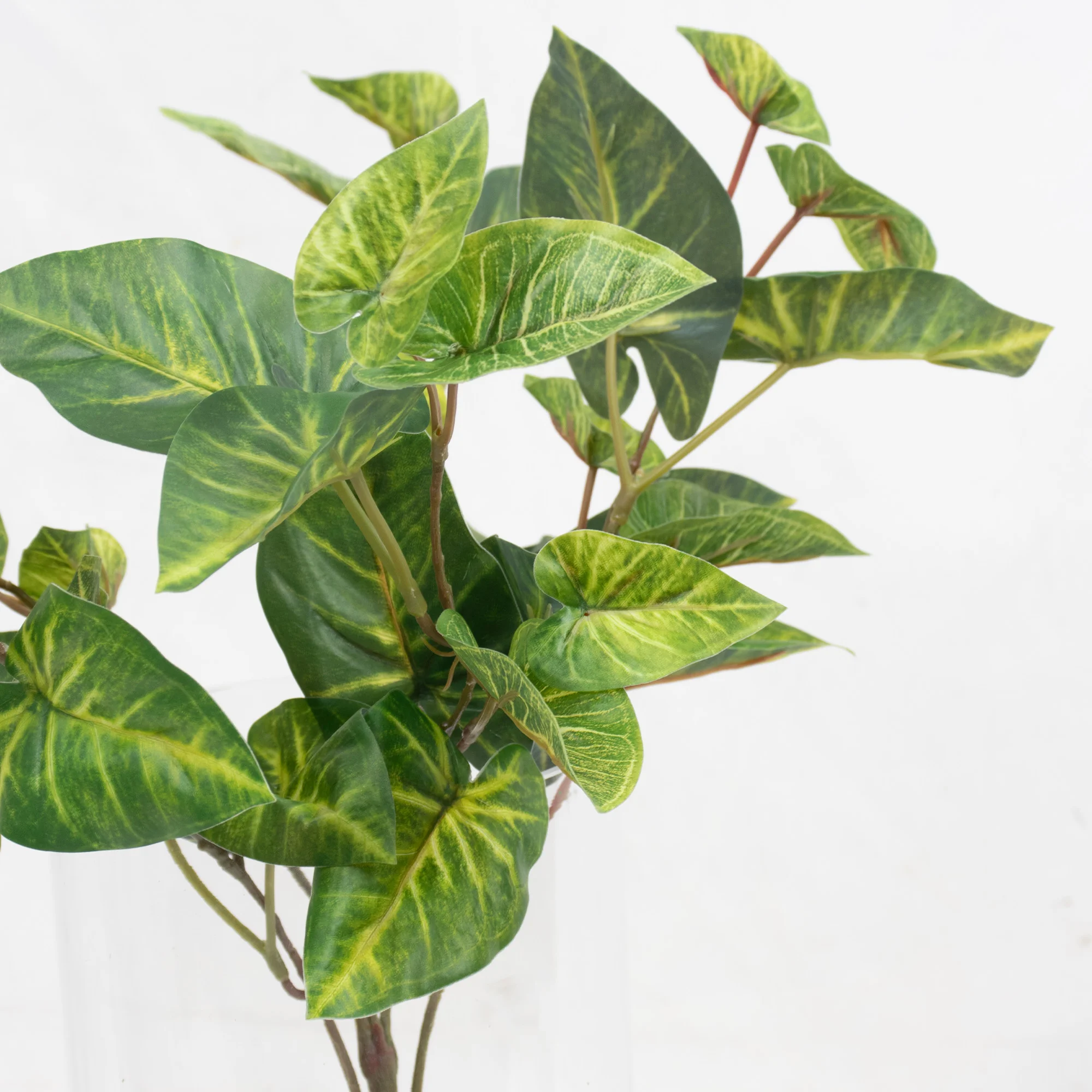 Caladiums have long been admired for their ornamental leaves, often called “Angel Wings.” With this artificial version, you enjoy the same vibrant look without the challenges of watering, light balance or seasonal dieback.