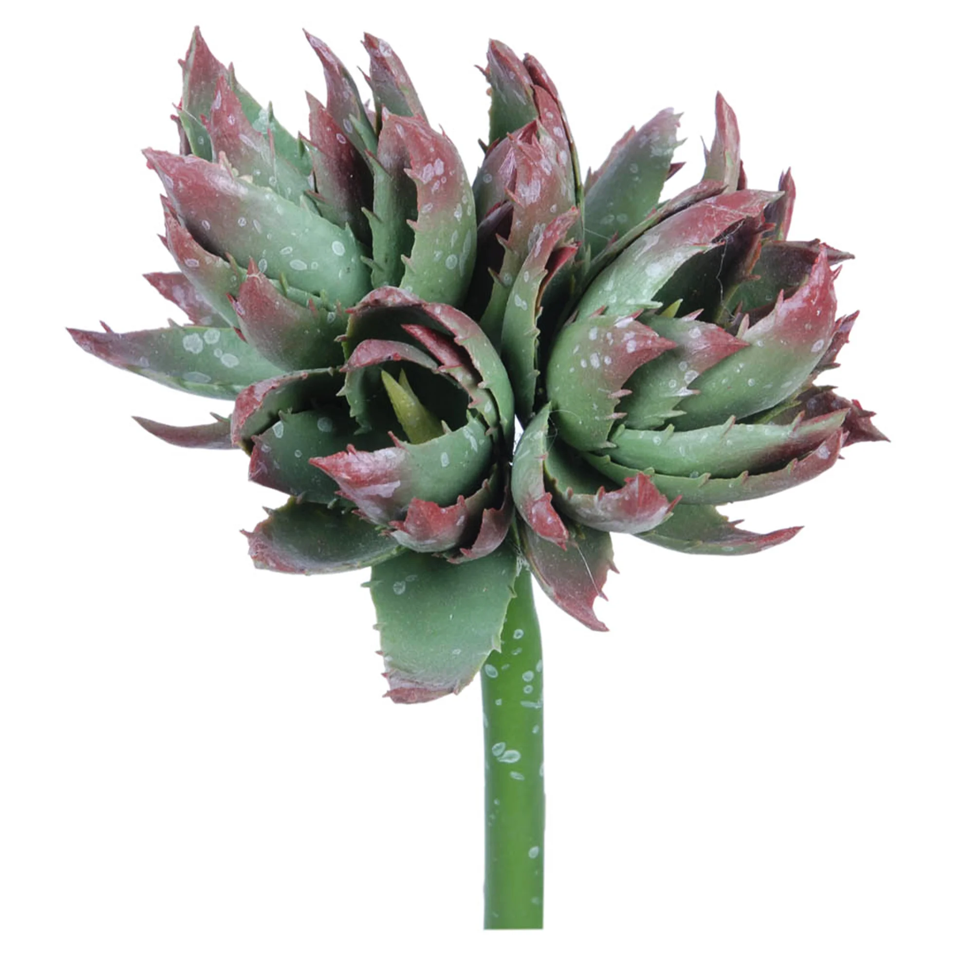 The pick features multiple small heads growing from a single stem, creating instant volume for your arrangements. The fleshy leaves are coloured in a deep green that transitions to rich burgundy tips, mimicking a plant that has been naturally "sun-kissed." Each leaf is speckled with realistic white spots and edged with soft spines, adding wonderful texture and visual interest to the display.