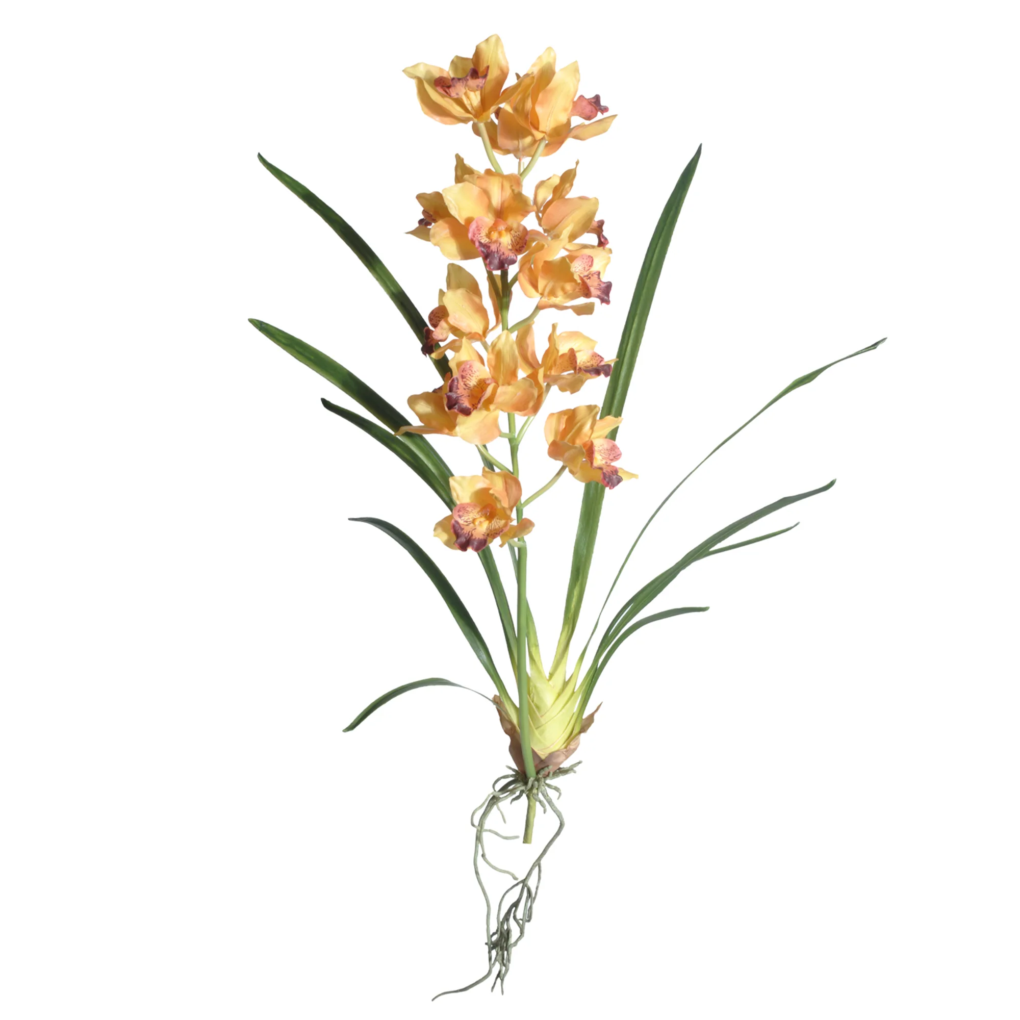 This exquisite artificial Cymbidium Orchid plant features a stunning display of orange and mauve blooms. Its main benefit is its "botanically correct" design, complete with roots, allowing you to "plant" it into your favourite pot for an instantly realistic, high-end look without the complex care orchids require.