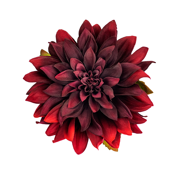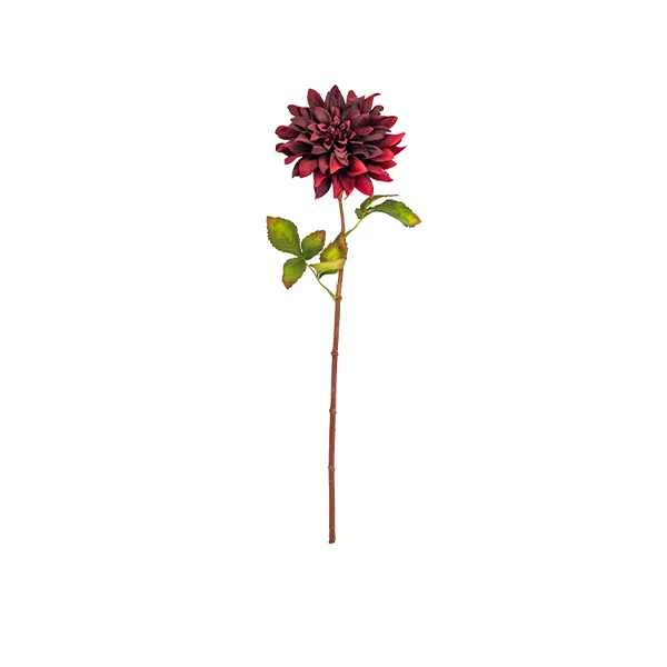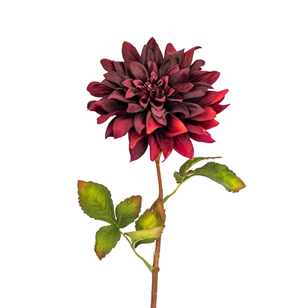 Artificial Dahlia stem with leaves - Dark Burgundy
