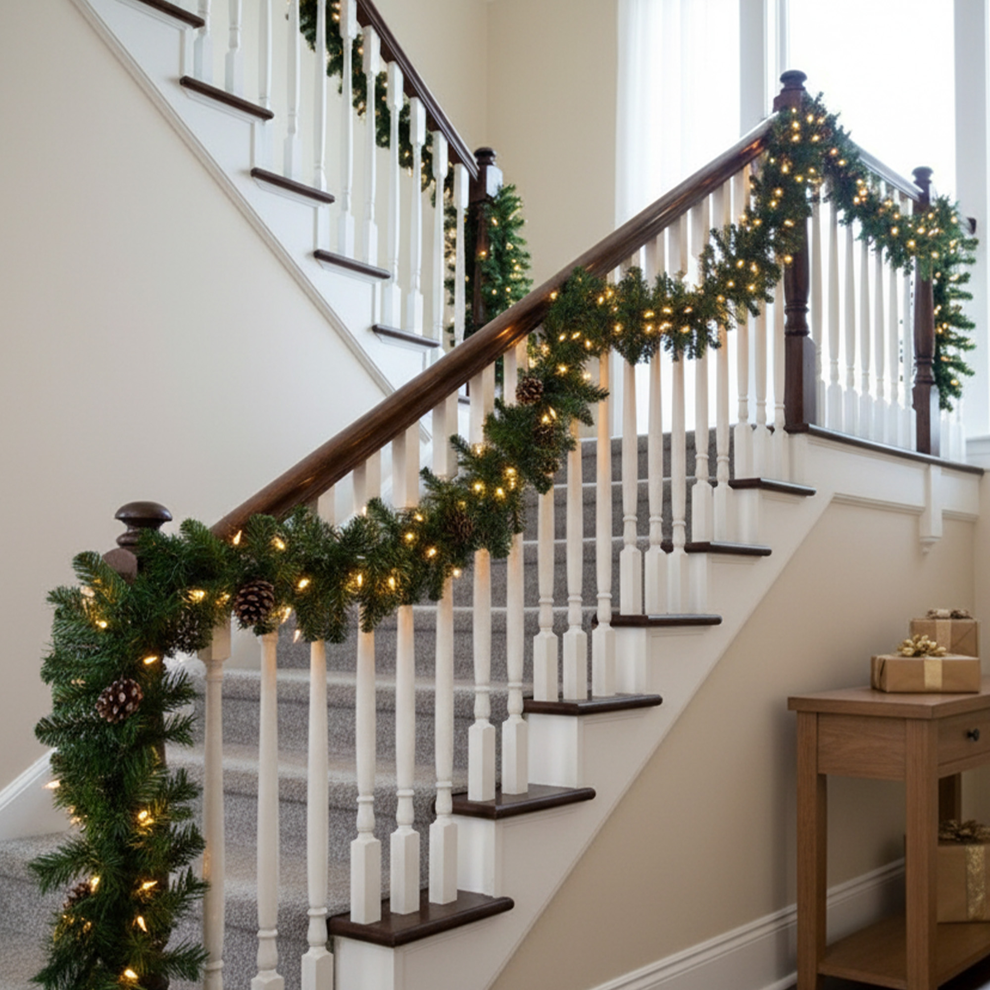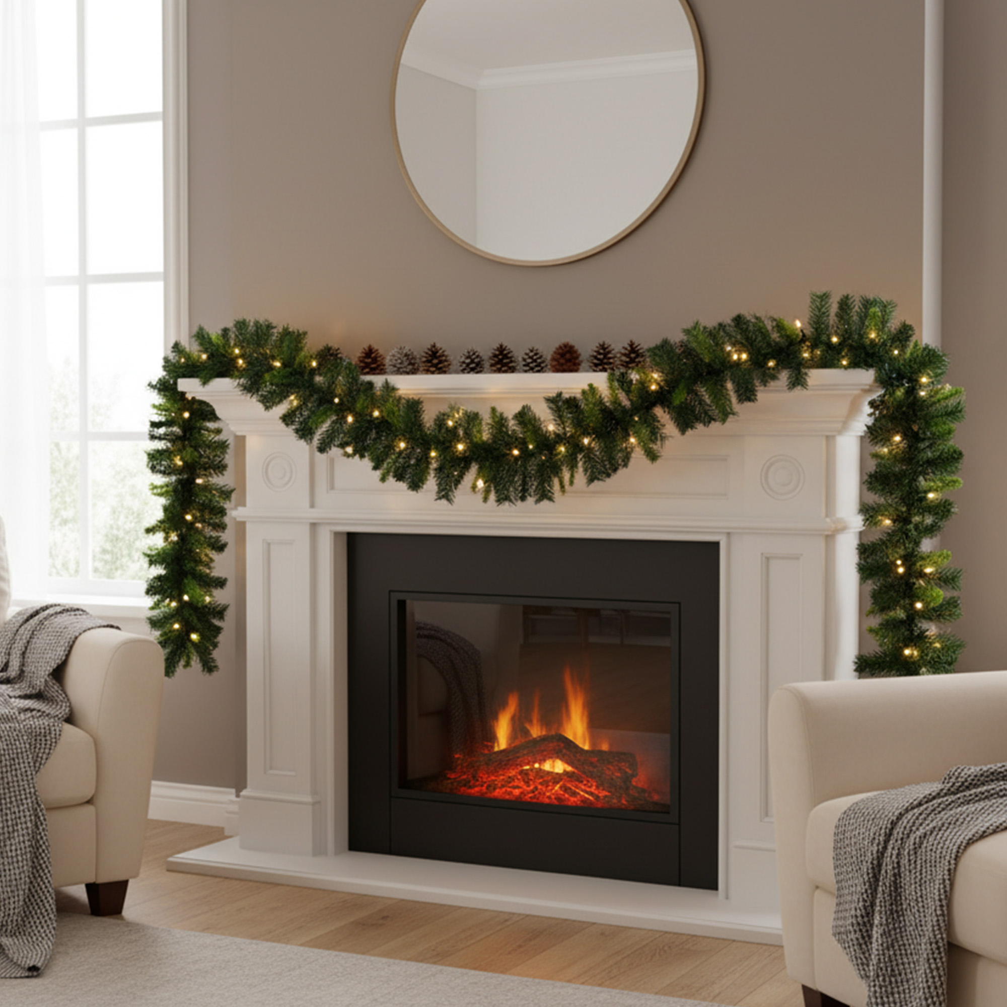 Bring timeless winter style to your space with the Deluxe Mixed Pine Garland. At 2.7 metres long, this artificial garland is wide, full, and crafted from durable materials that keep it looking fresh season after season. The flexible design means you can easily shape it around bannisters, mantels, or door frames, and even trim it to the exact length you need.