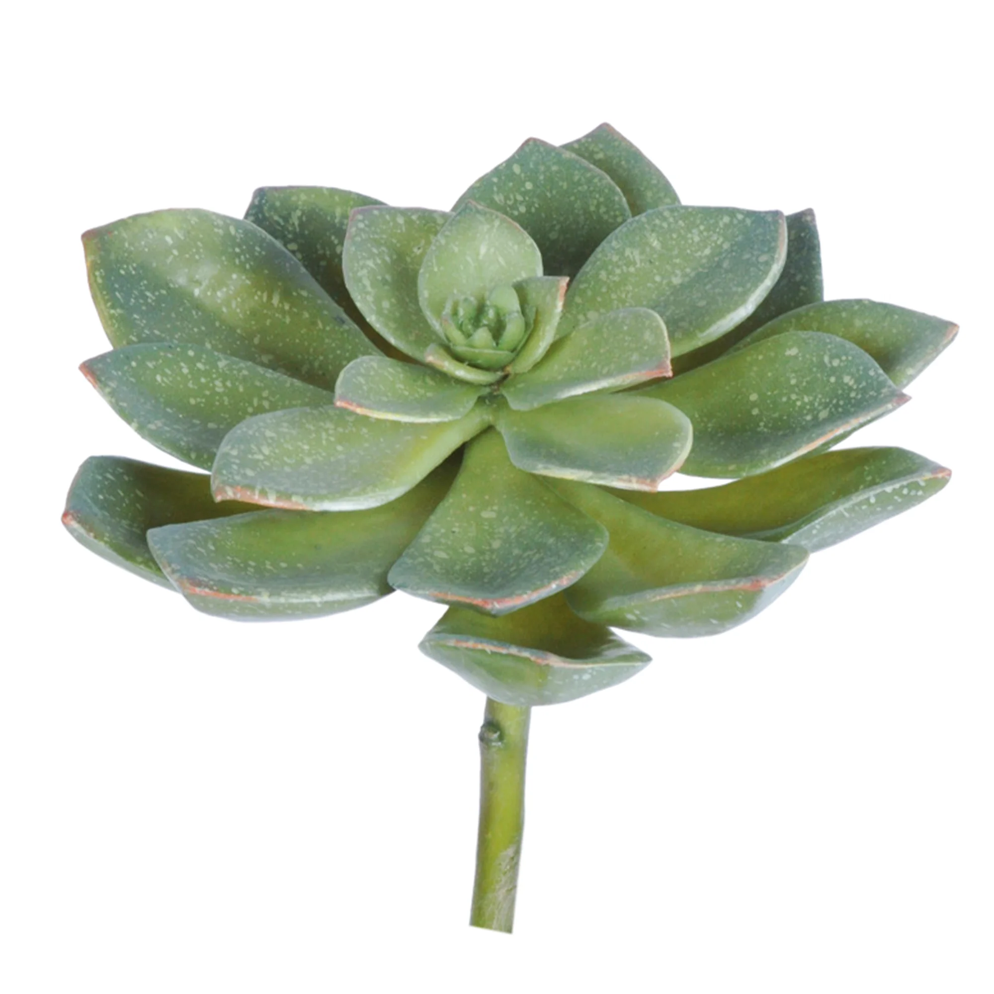 The pick measures approximately 19cm in height and 18cm in width, making it a substantial addition to any arrangement. It features fleshy leaves in a soft blue-green hue that are flat on the upper surface and rounded underneath, mimicking the plant's natural growth habit. Each leaf is delicately edged with a fine line of red at the tip, adding definition and a hint of warmth to the cool green tones.