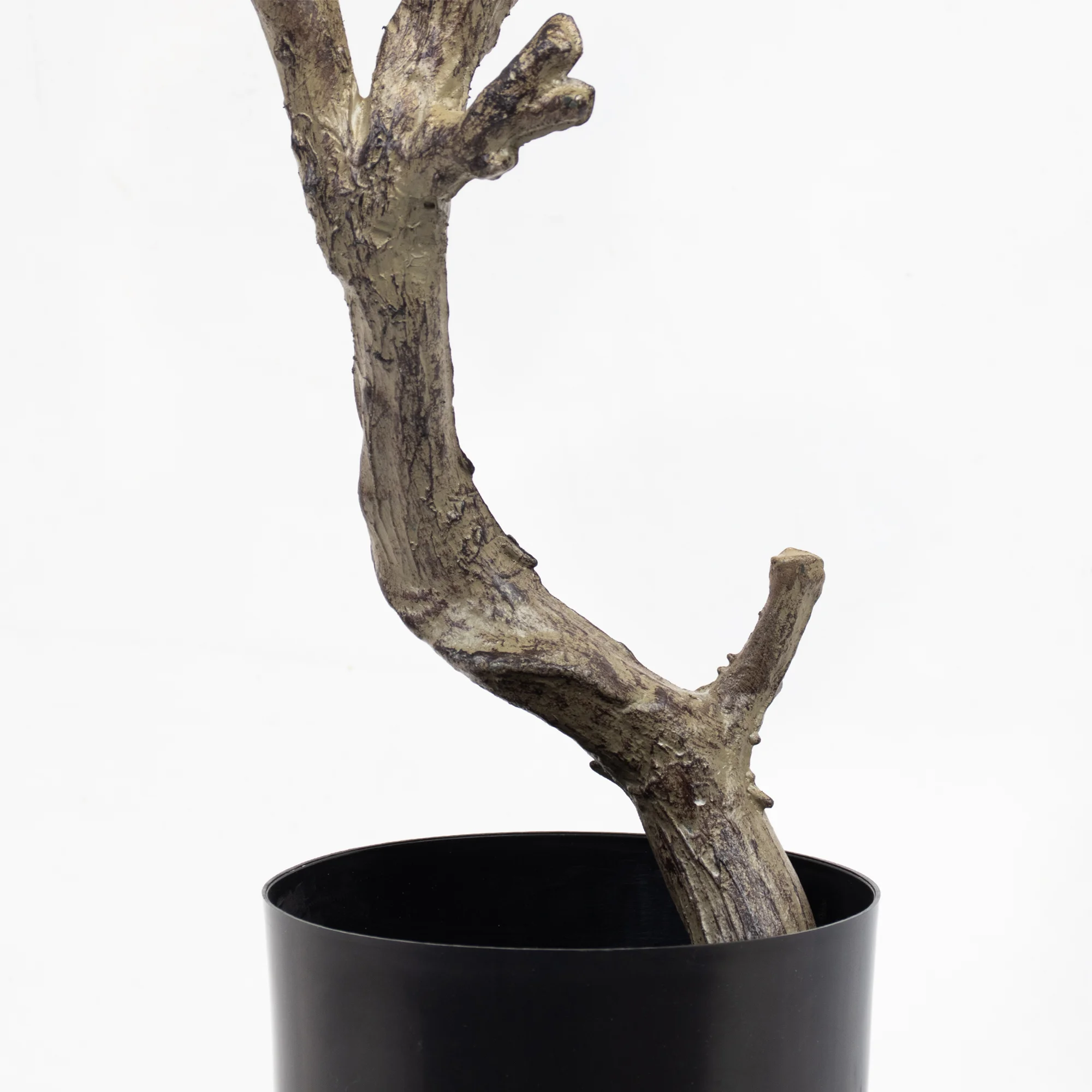 The trunk has a realistic, gnarled texture that mimics mature wood, while subtle red tips on the branches bring a sense of new growth and vitality. The ficus tree comes set in a black plastic pot, ready to be placed inside a decorative planter or pot from our Planters & Pots Collection.