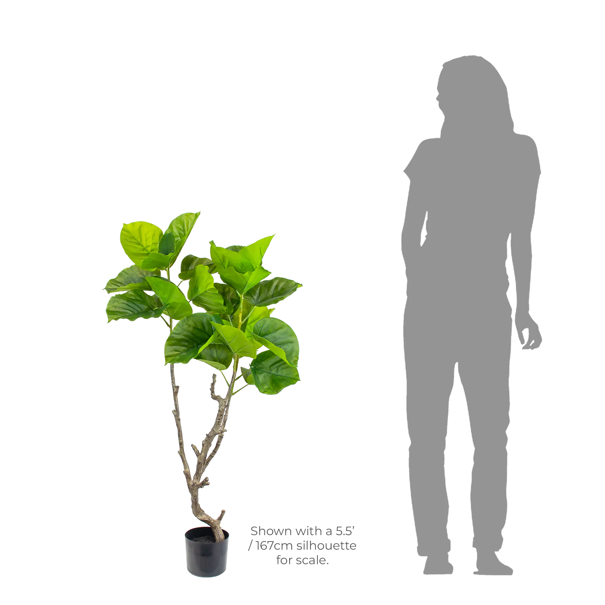 The Ficus Umbellata Artificial Tree stands 120cm tall and captures the gentle, sculptural form of the real Ficus Umbellata. Known for its broad, heart-shaped leaves, this tree adds a soft, organic presence to both modern and classic interiors. The Ficus Umbellata has long been admired for its expressive leaves and calming appearance. Each leaf is crafted in lifelike shades of green, with a natural sheen that reflects light beautifully.