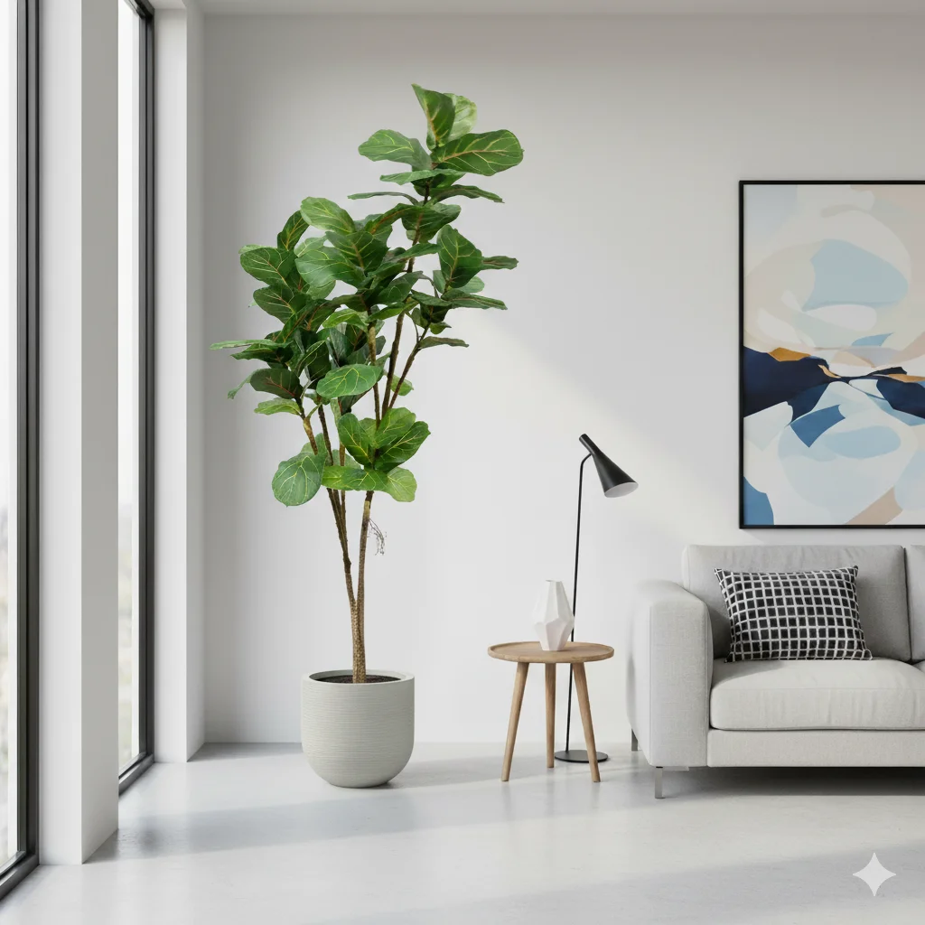 The Fiddle Leaf Fig is known for its large, glossy leaves that fan out beautifully, making it a favourite in modern interior design. In nature, it’s a plant that demands perfect light and humidity. This artificial version offers the same visual impact, without worrying about watering or fading. Ideal for living rooms, offices, entryways, or hotel lobbies, this lifelike artificial tree instantly lifts any interior with a fresh, green statement.