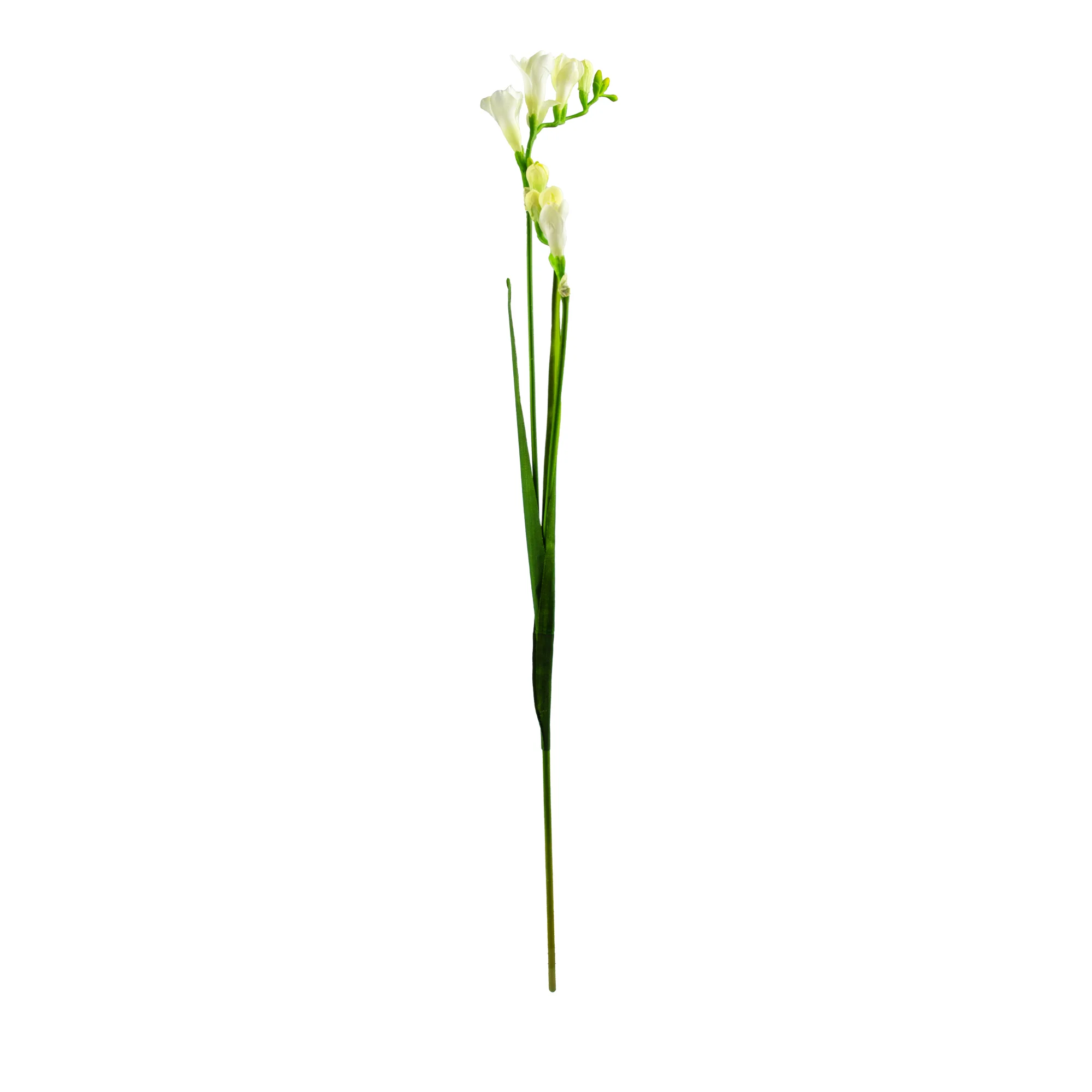 The freesia is known for its gentle fragrance and graceful form. First discovered in South Africa, it quickly became a symbol of friendship and thoughtfulness. This artificial freesia spray captures the same soft beauty in a lasting design. With two cream-white flower heads, delicate buds, and natural-looking leaves, it offers the appearance of fresh blooms without the need for care.