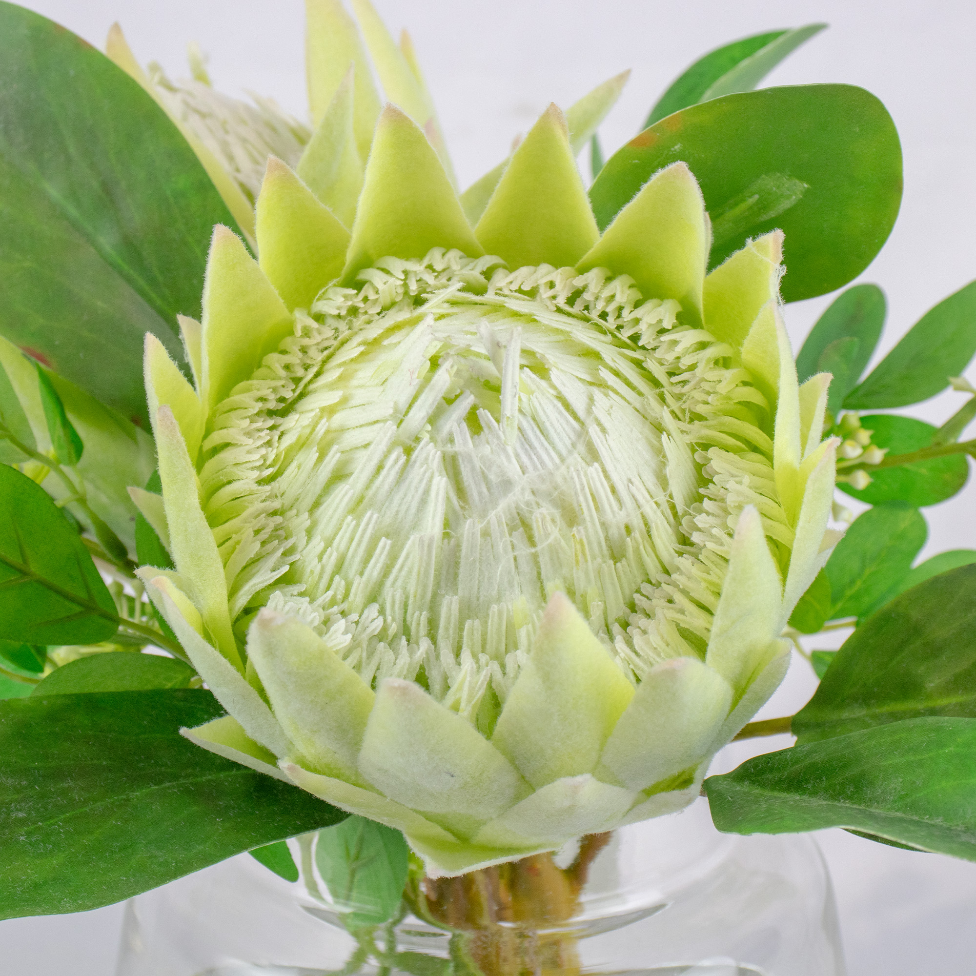 This size is ideal for adding a fresh pop of green to a desktop, a kitchen counter, or a bookshelf. The protea is a symbol of courage and transformation, making this an inspirational and friendly addition to any space.