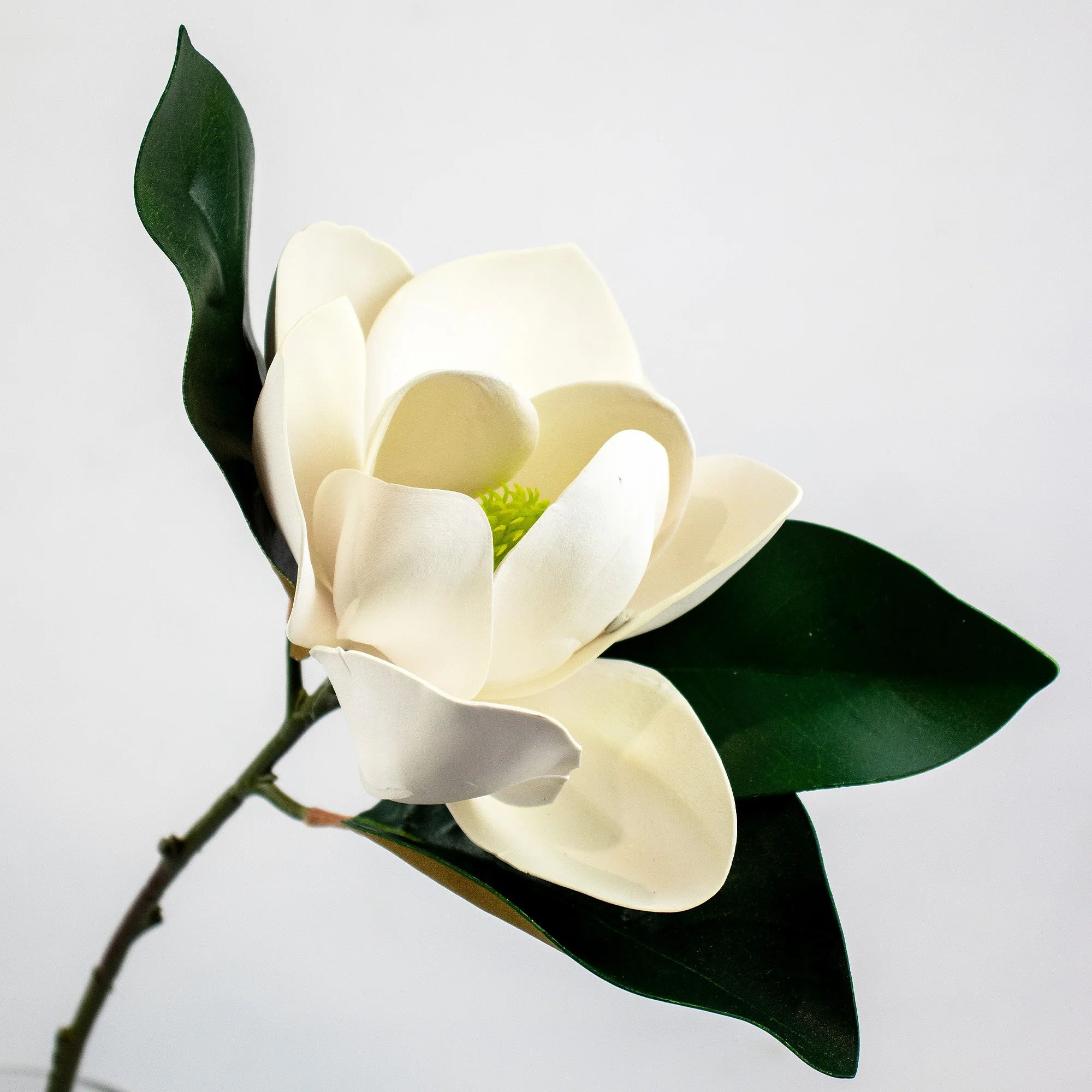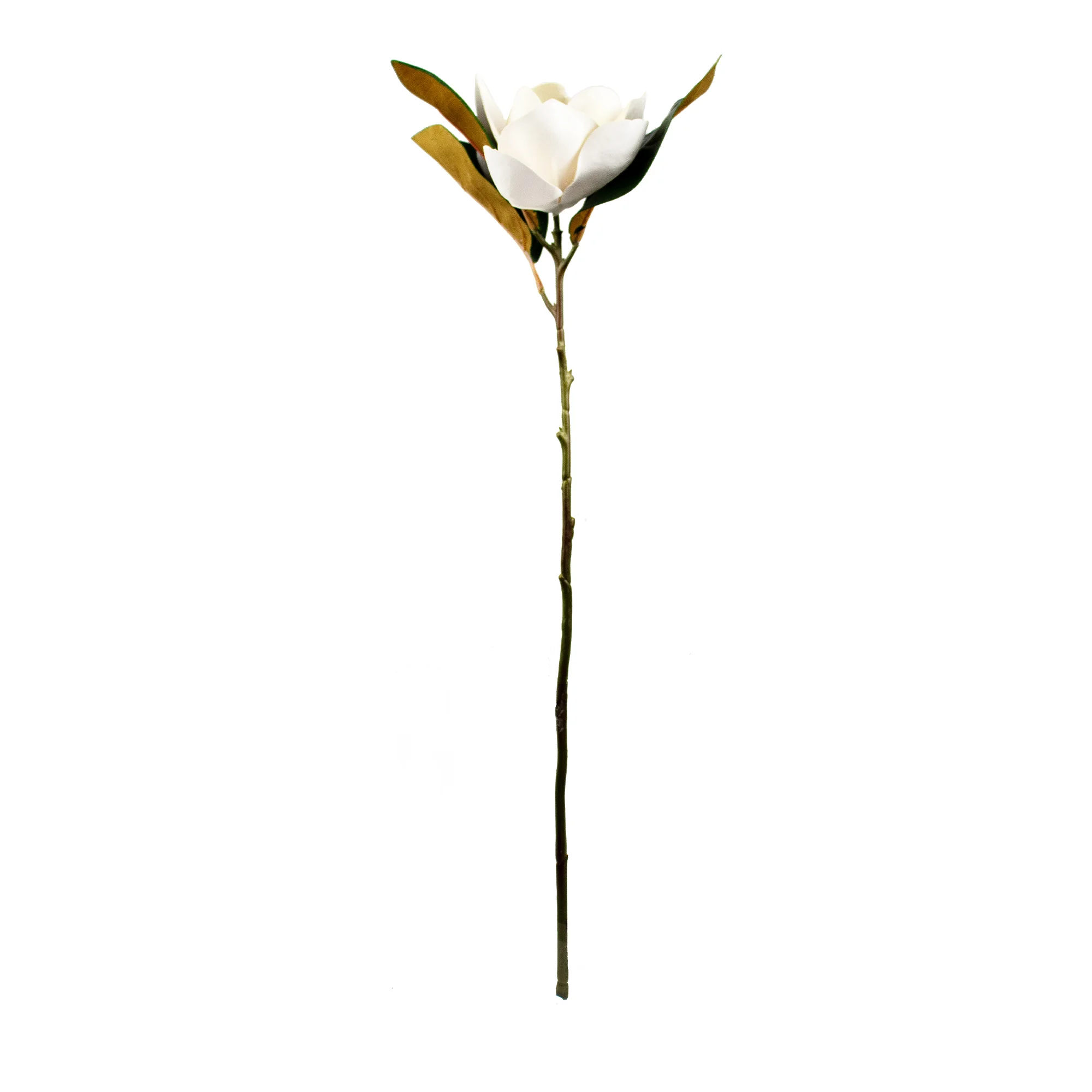 White Magnolia Stem – Single Artificial Open Flower with Leaves, 66cm