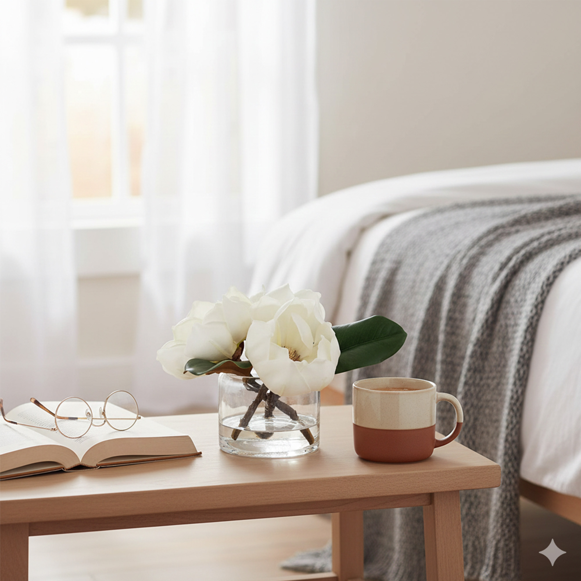 This approachable size is perfect for a bedside table, a windowsill, or a small work desk. Magnolias often symbolise dignity and purity, bringing a calm, friendly feel to any corner. This piece offers reliable beauty that lasts forever without any care.