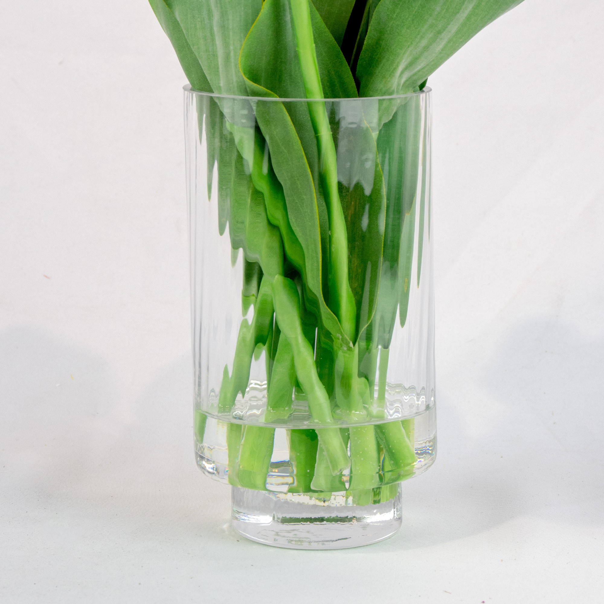 MIXED PINK TULIPS IN FOOTED CYLINDER VASE