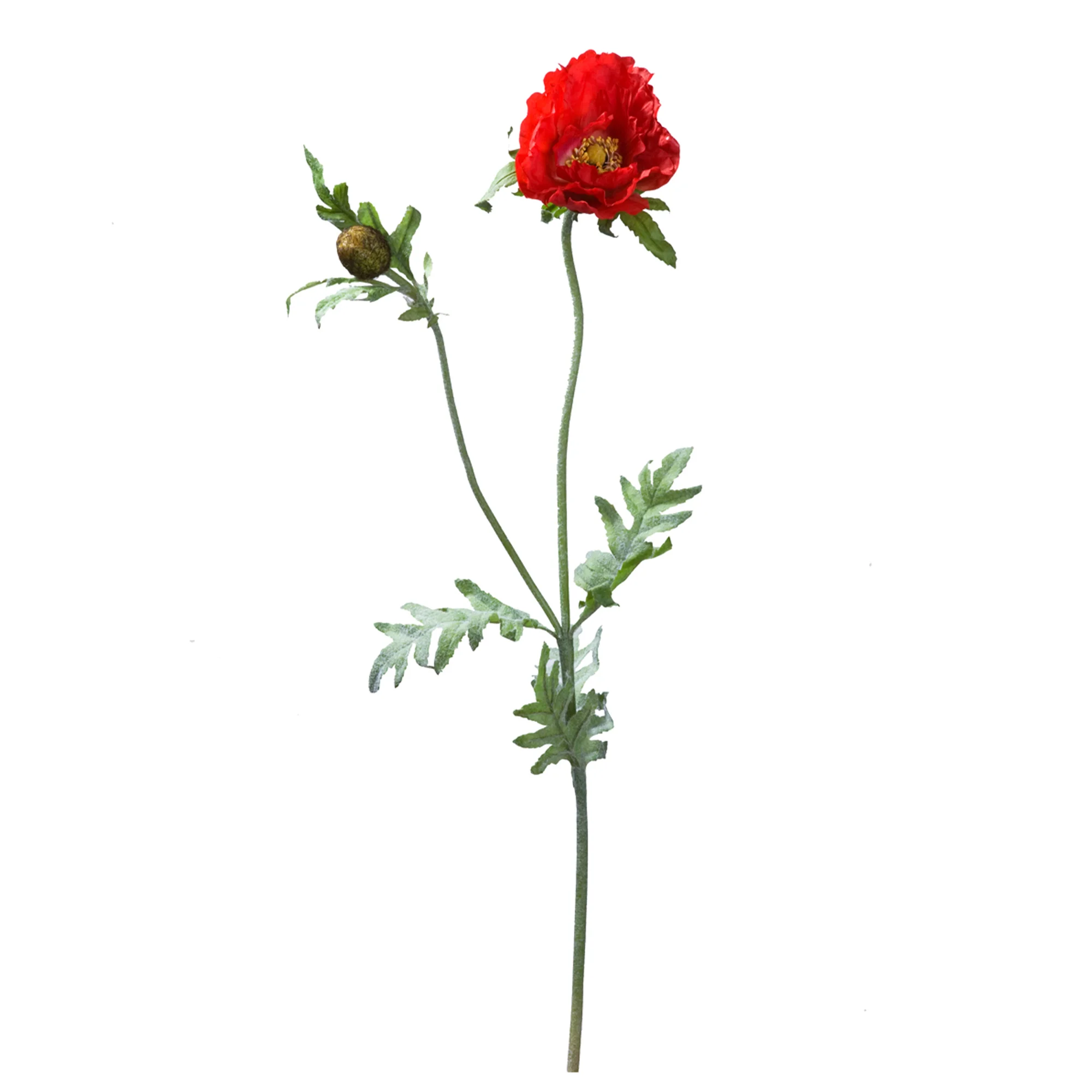 This dramatic artificial Oriental Poppy spray features a vibrant red bloom and a realistic bud. Its main benefit is adding a bold, exotic touch to your home that captures the wild beauty of the poppy without the short lifespan of the fresh flower. It offers the artistic, papery texture of a garden favourite in a durable form that creates an instant impact.