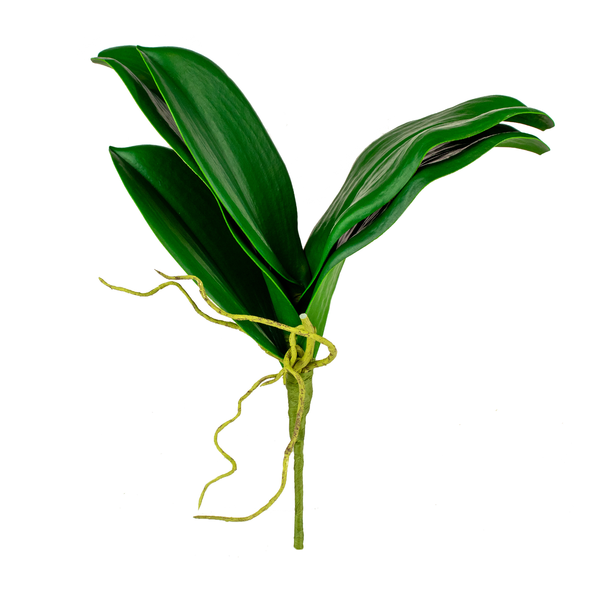 Artificial Phalaenopsis leaves set (5 individual leaves), with roots, Green.