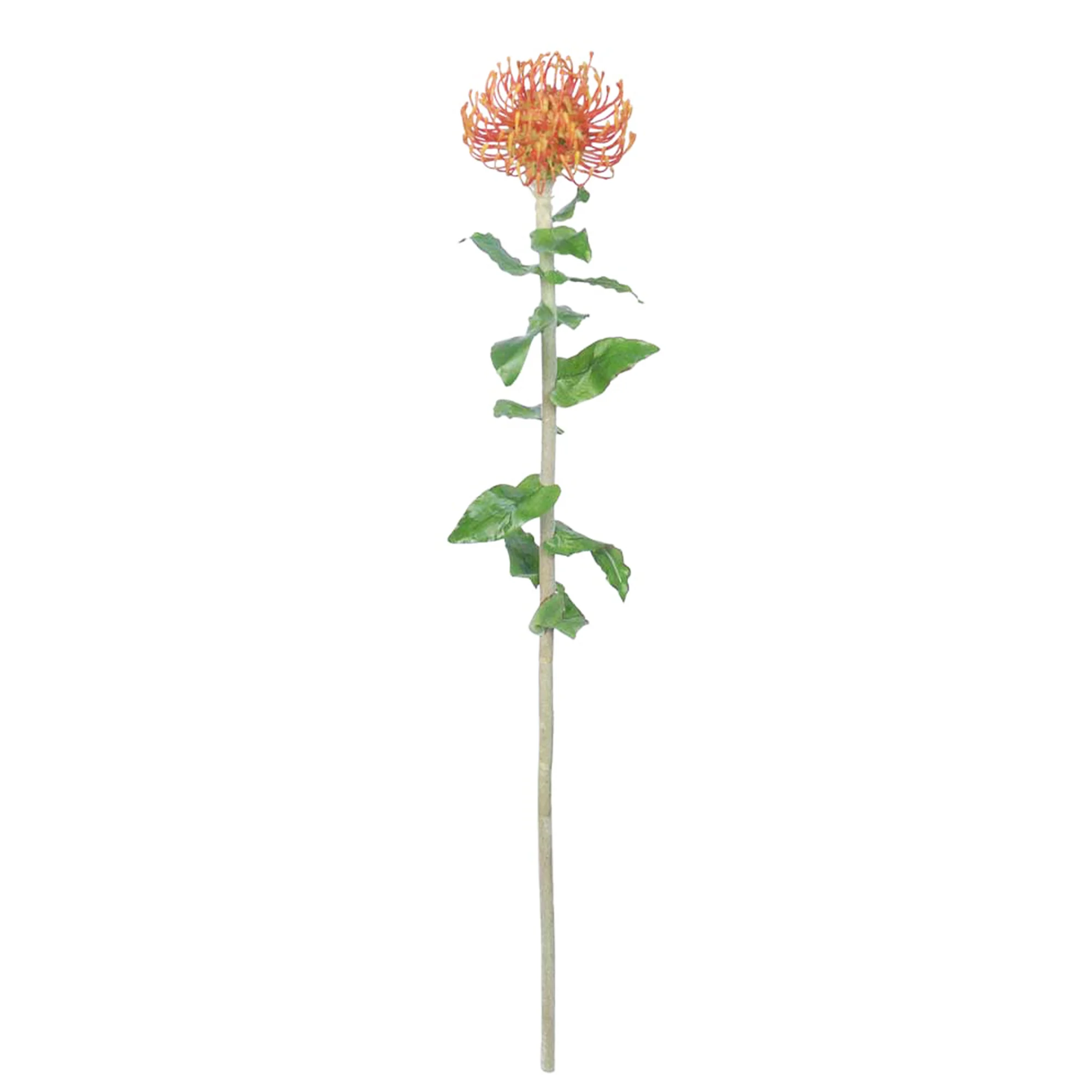 This striking artificial Pincushion Protea (Leucospermum) stem features a vibrant gold and orange bloom. Its main benefit is adding a bold, architectural touch and exotic texture to your home decor that captures the wild beauty of the fynbos without the need for water or special care. It offers the unique, spiky silhouette of this native favourite in a durable form that stays colourful all year round.