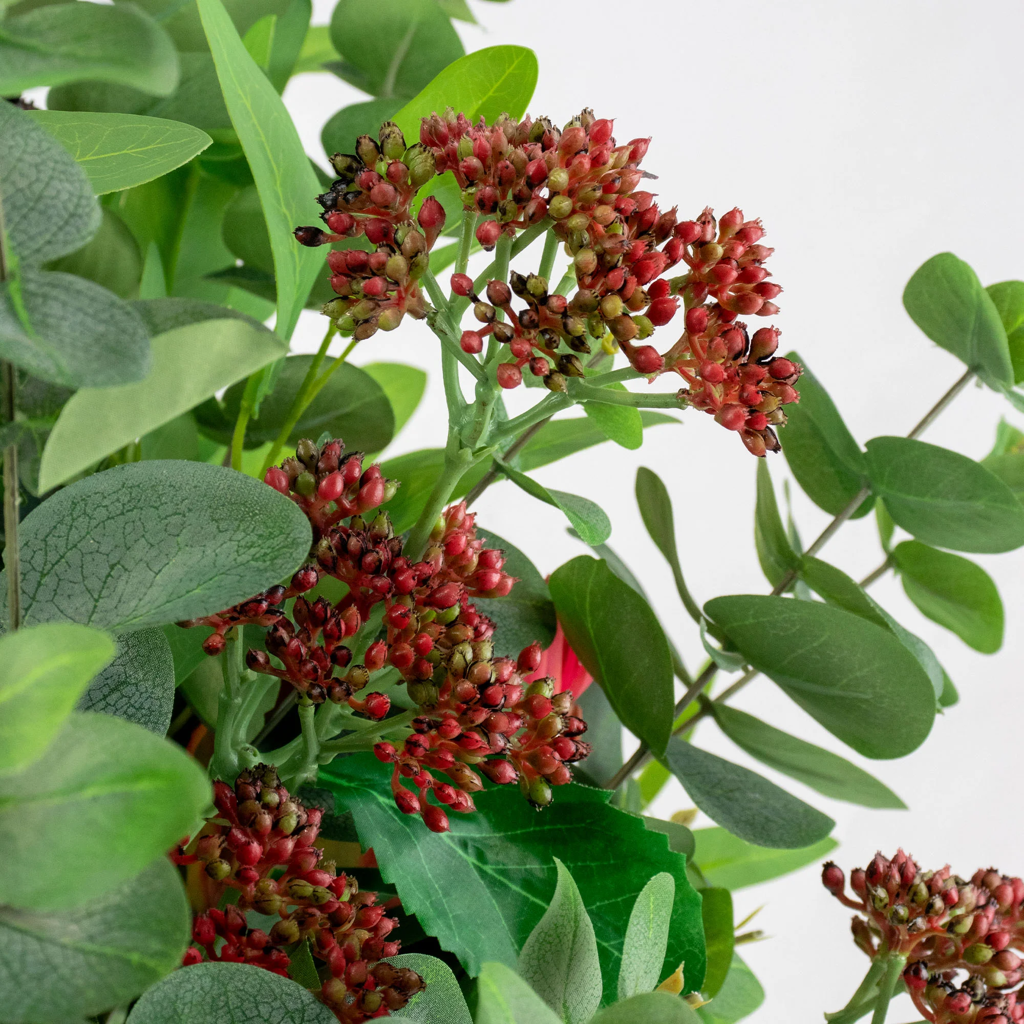 To keep your arrangement looking its best, we recommend using it indoors. Please place it away from harsh, direct sunlight to protect the rich red and green colours from fading over time.
